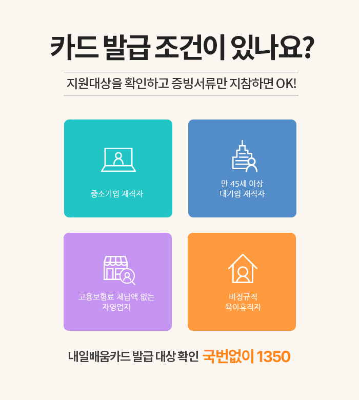 - 일용근로자 (근로자 카드 신청일 이전 60일 이내에 1개월 동안 10일 이상 일용근로내역이 있는 자)